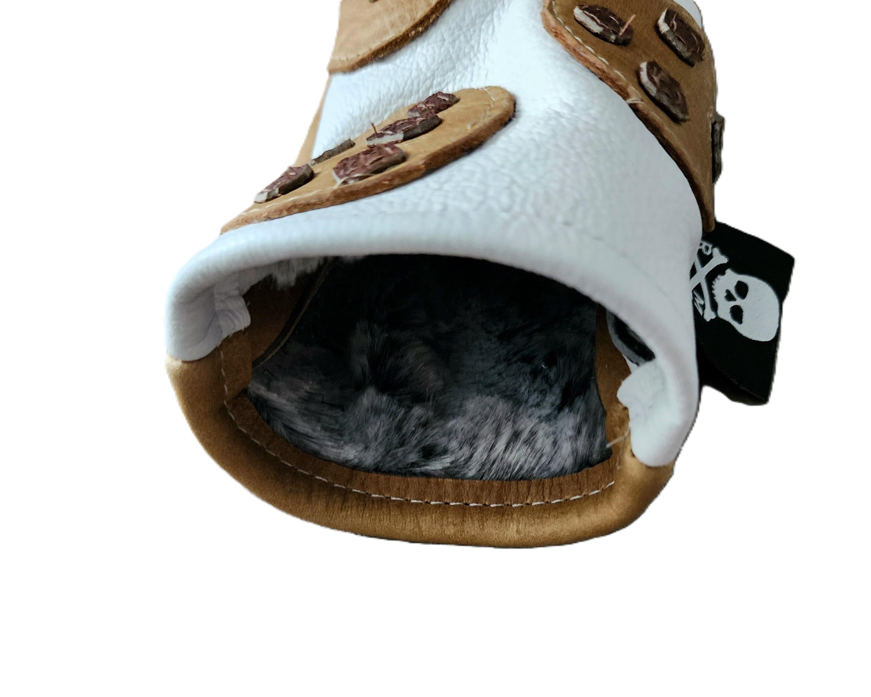 New! 2 Tone Baseball Glove leather Skull & Bones w/ Stripe Headcover!