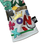 The RMG Collage Driver Headcover is crafted from premium leather. Each of these collage patchwork headcovers is crafted from leftover applique from the headcover making process. COVERS MAY VARY SLIGHTLY IN APPLIQUE SELECTION! Upcycled pieces handsewn with random RMG iconic motifs.  There will be only 1 of this exact design!